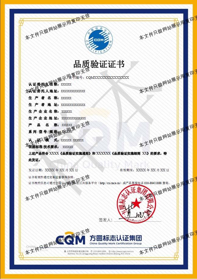 為加強(qiáng)對(duì)方圓自愿性產(chǎn)品認(rèn)證標(biāo)志的管理,確保產(chǎn)品認(rèn)證標(biāo)志的正確使用,維護(hù)產(chǎn)品認(rèn)證標(biāo)志的權(quán)威性和CQM的信譽(yù),方圓標(biāo)志認(rèn)證集團(tuán)依據(jù)國(guó)家認(rèn)證認(rèn)可的相關(guān)要求制定了產(chǎn)品認(rèn)證標(biāo)志使用規(guī)范。標(biāo)志基本樣式: